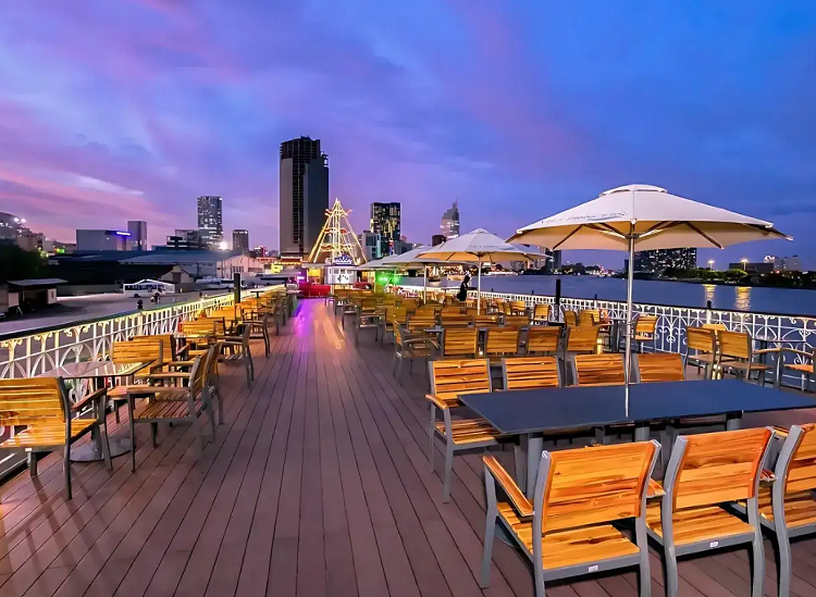 Tầng 3 (Sundeck): Boong tàu trên tầng 3 có không gian mở 360 độ nơi lý tưởng nhất để nhâm nhi một ly cocktail, đón gió sông và check-in với view toàn cảnh các biểu tượng như: Landmark 81 hay cầu Ba Son…