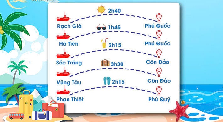 - Nhiều tuyến tàu du lịch biển đảo hot: SAOMAI kết nối đa dạng tuyến tàu cao tốc du lịch biển đảo như: