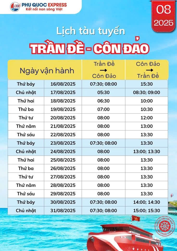 Saomaifly xin thông báo tới Quý khách hàng lịch tàu Trần Đề - Côn Đảo 8/02025: