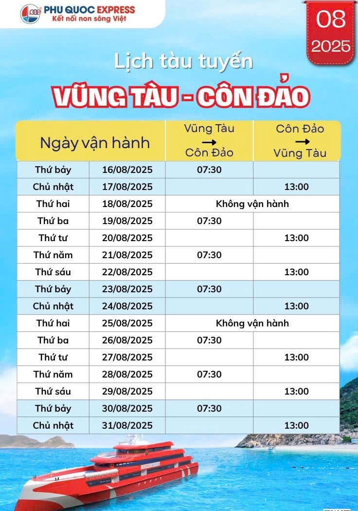 Saomaifly xin thông báo tới Quý khách hàng lịch tàu Vũng Tàu - Côn Đảo 8/02025: