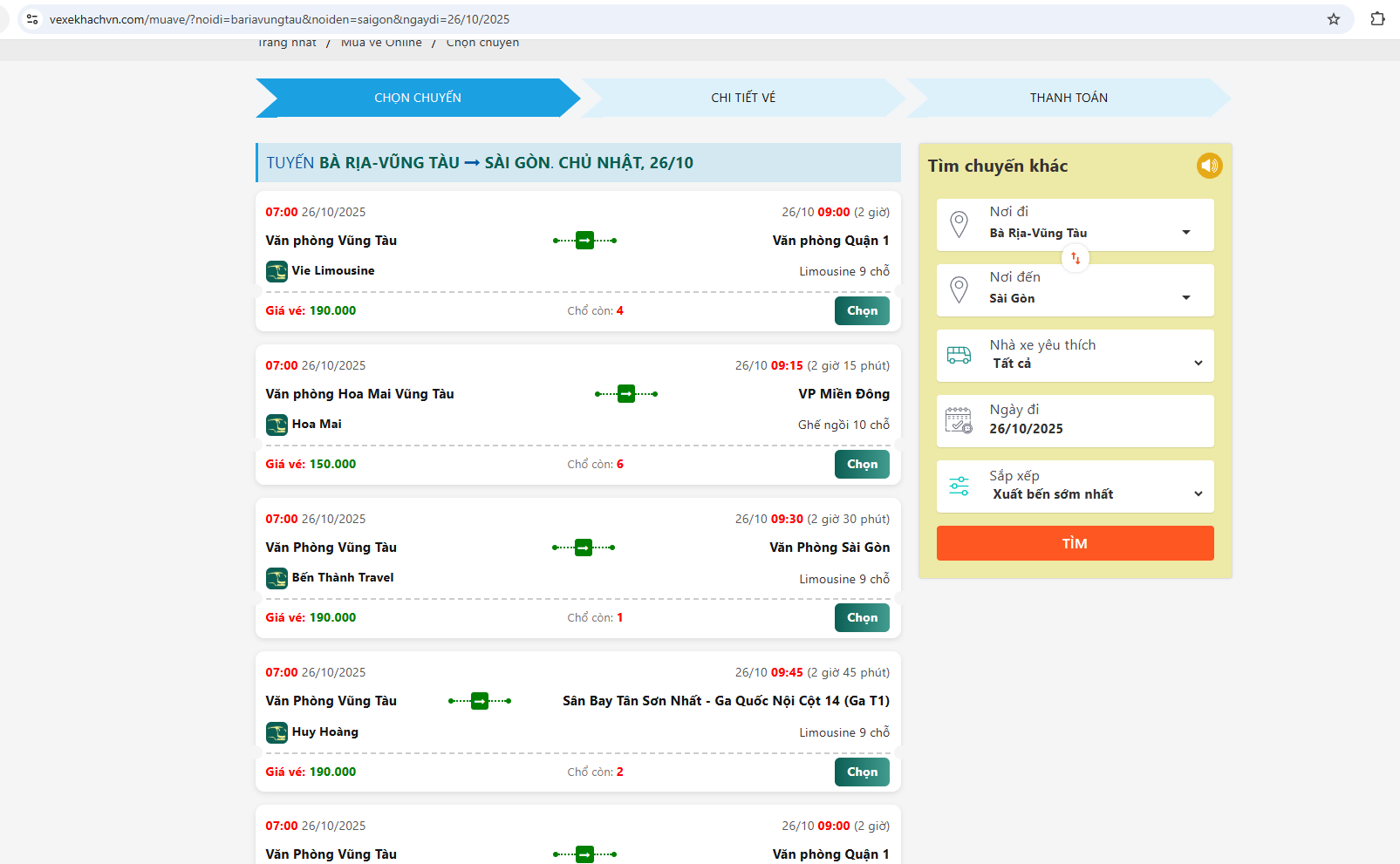 Đặt vé xe Vũng Tàu - Sài Gòn sân bay online tại vexekhachvn giúp hành khách chọn đúng nhà xe, đúng giá và thanh toán an toàn tuyệt đối. Chỉ với các thao tác đơn giản nhận vé điện tử tiện lợi, không lo trễ chuyến, không mất thời gian chờ đợi ở bến.