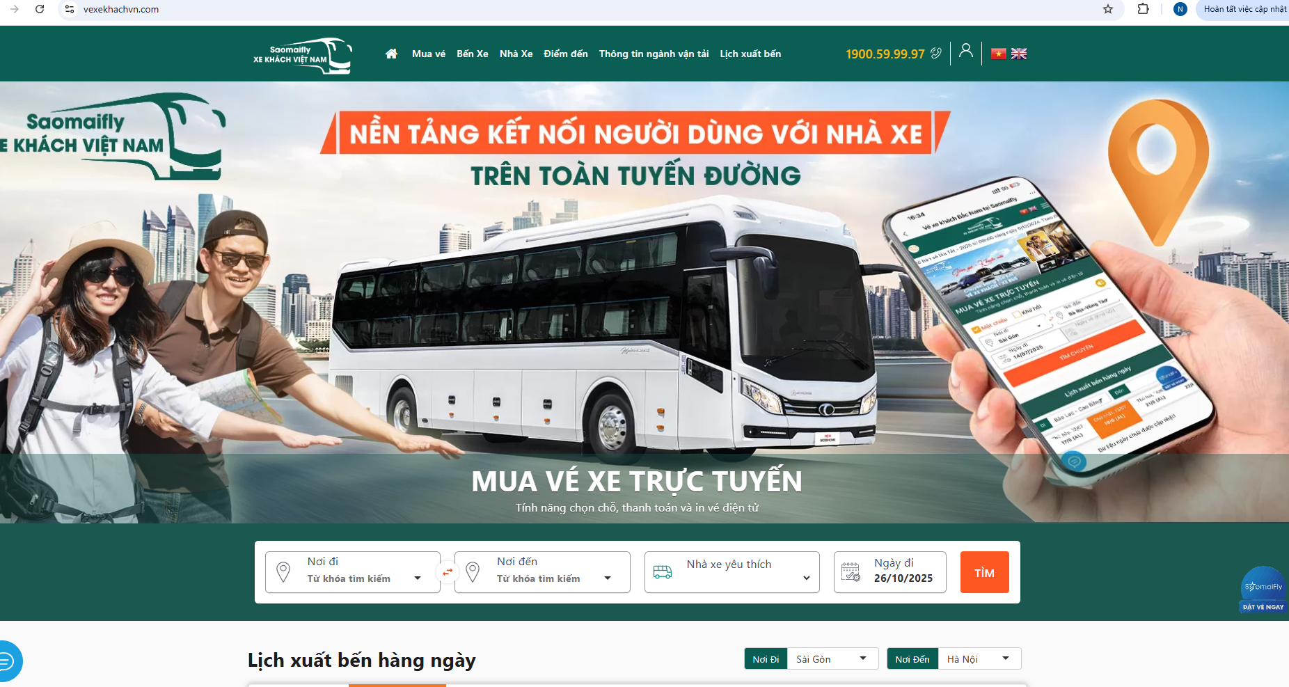 “Đặt vé online, giữ chỗ liền tay, an tâm di chuyển” – giải pháp tại Saomaifly giúp hành khách chủ động kế hoạch hành trình, tiết kiệm thời gian và yên tâm tận hưởng từng chuyến đi.