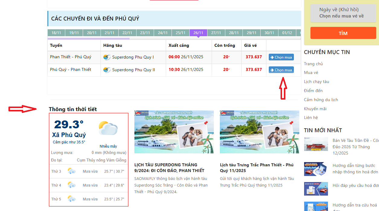 Bên cạnh tra cứu lịch tàu hành khách có thể tra cứu thông tin thời tiết tại đảo Phú Quý vào ngày đi và có kế hoạch di chuyển phù hợp.