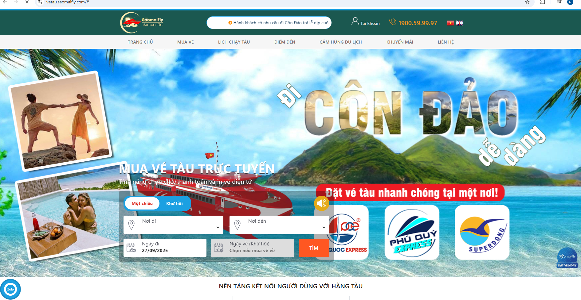 Với Saomaifly việc đặt vé tàu cao tốc chưa bao giờ đơn giản đến thế. Chỉ với các thao tác đơn giản khoảng 60 giây trên điện thoại, bạn đã sẵn sàng cho hành trình du lịch biển đảo nhanh chóng – tiện nghi – an toàn. Đặt vé tàu cao tốc trực tuyến tại: https://vetau.saomaifly.com/ hoặc liên hệ zalo 0901442555 để được hỗ trợ.